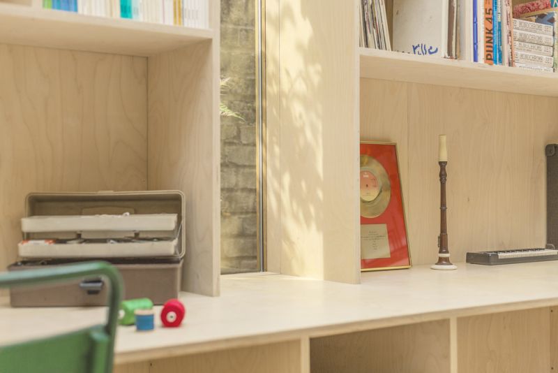 In order to make the most of the available space, the work desks were built into the wall. A window placed between the two workstations keeps them separated.