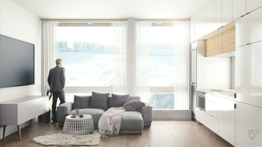 The firm also offers models H03 and H04, which are quite spacious. The H03 measures 528 sq ft (50 sq m), and the H04 is 640 sq ft (60 sq m). Each of them features two bedrooms, along with a spacious kitchen, lounge, and bedroom. They cost $285,726 and $372,298, respectively.